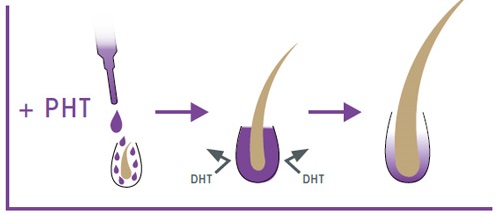 Die hochwirksame Mischung hat eine Art „Aufweck-Effekt“ auf schlafende Haarwurzeln. Denn, wenn Haare ausfallen bedeutet dies, dass vormals aktive Haarwurzeln in eine Ruhephase eintreten – also sozusagen „einschlafen“ – und keine neuen Haare mehr produzieren. Der „PHT-Komplex“ hemmt DHT, regt die Zellteilung an und bewirkt, dass schlafende Haarwurzeln aufwachen und wieder die Produktion neuer, gesunder Haare aufnehmen.